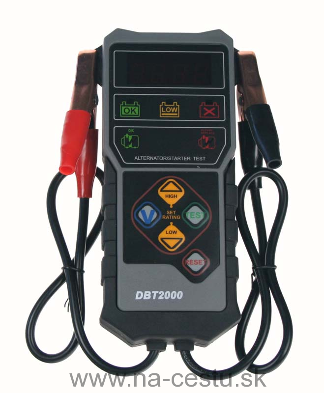Profesionálny multifunkčný tester 12V autobatérií. Vhodný pre klasické kyselinové, gélové a AGM batérie. Po pripojení batérie tester na displeji ukáže okamžité napätie batérie. Zadáte typ batérie a normu, v ktorej chcete merať (EN, DIN, SAE atď.) A na displeji nastavíte hodnotu štartovacieho prúdu meranej batérie. Potom tester ukáže aktuálny štartovací prúd batérie. Diódy sa symboly batérie ukážu v akom stave batérie je: či je nabitá, je nutné ju nabiť alebo nahradiť novou. Ďalej je možné vykonávať meranie dobíjania alternátora a funkčnosť štartéra.