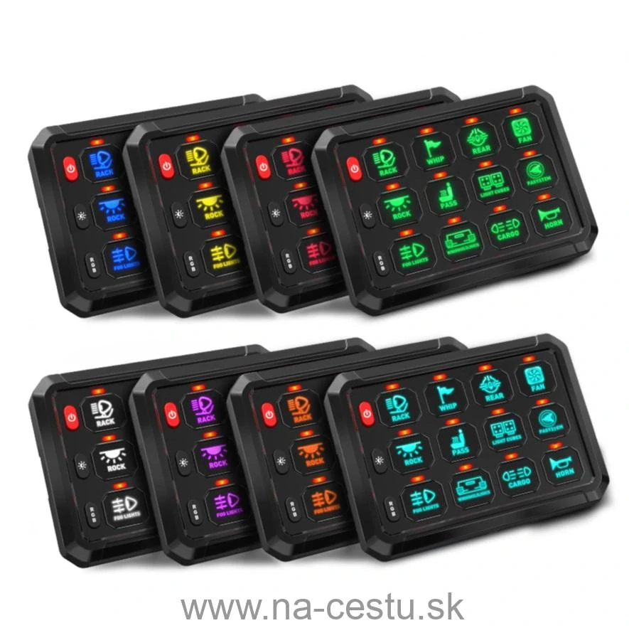Ľahko nainštalujete do 12 V a 24 V vozidiel. Je vhodný pre rôzne typy automobilov, terénne vozidlá, pickupy, nákladné vozidlá atď. Rôzne spínače pre ovládanie všeobecného elektrického vybavenia vo vozidle: svetlomety a iné zariadenia Ovládací panel je možné inštalovať na prístrojovú dosku, stredovú konzolu, sedadlo, strop, A-stĺpik vo vozidle atď.